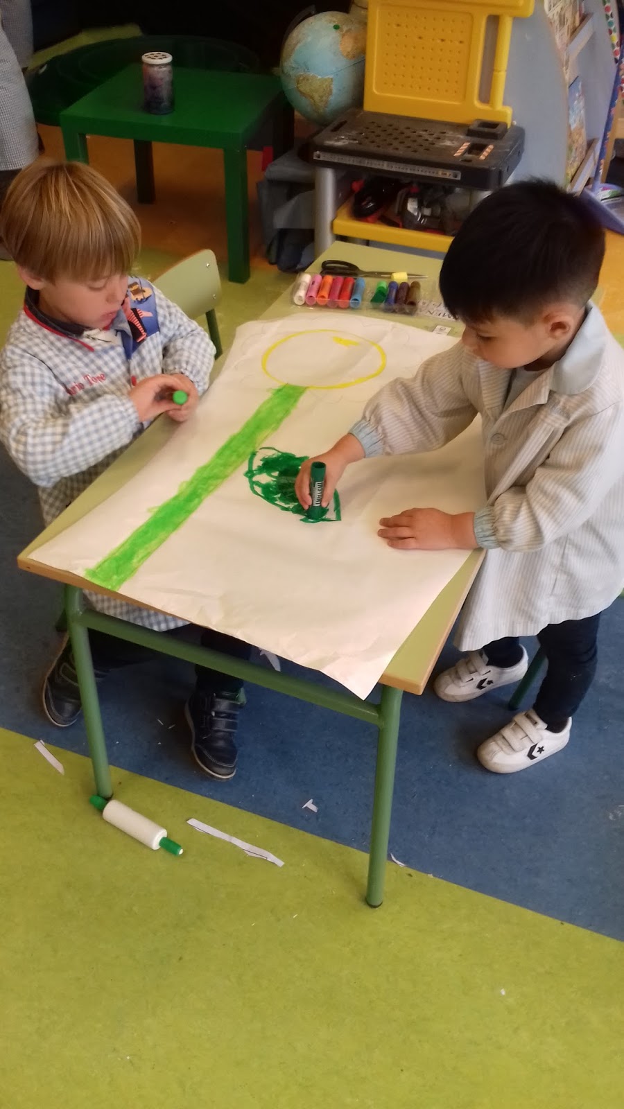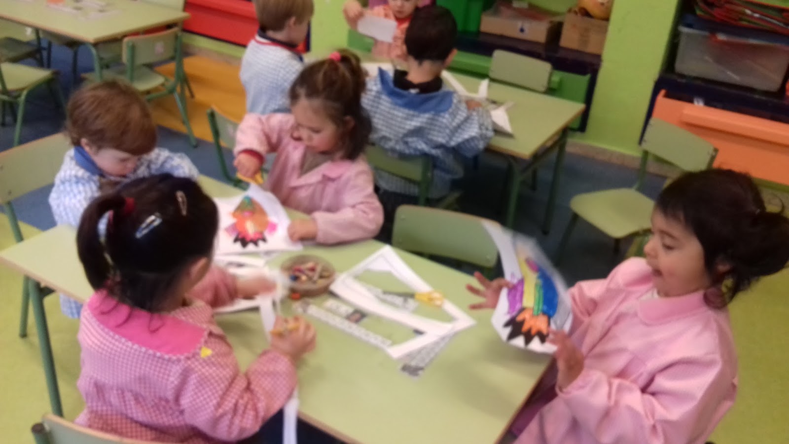 Hemos coloreado, recortado y después pegado ordenadamente para realizar este puzzle de un cohete.